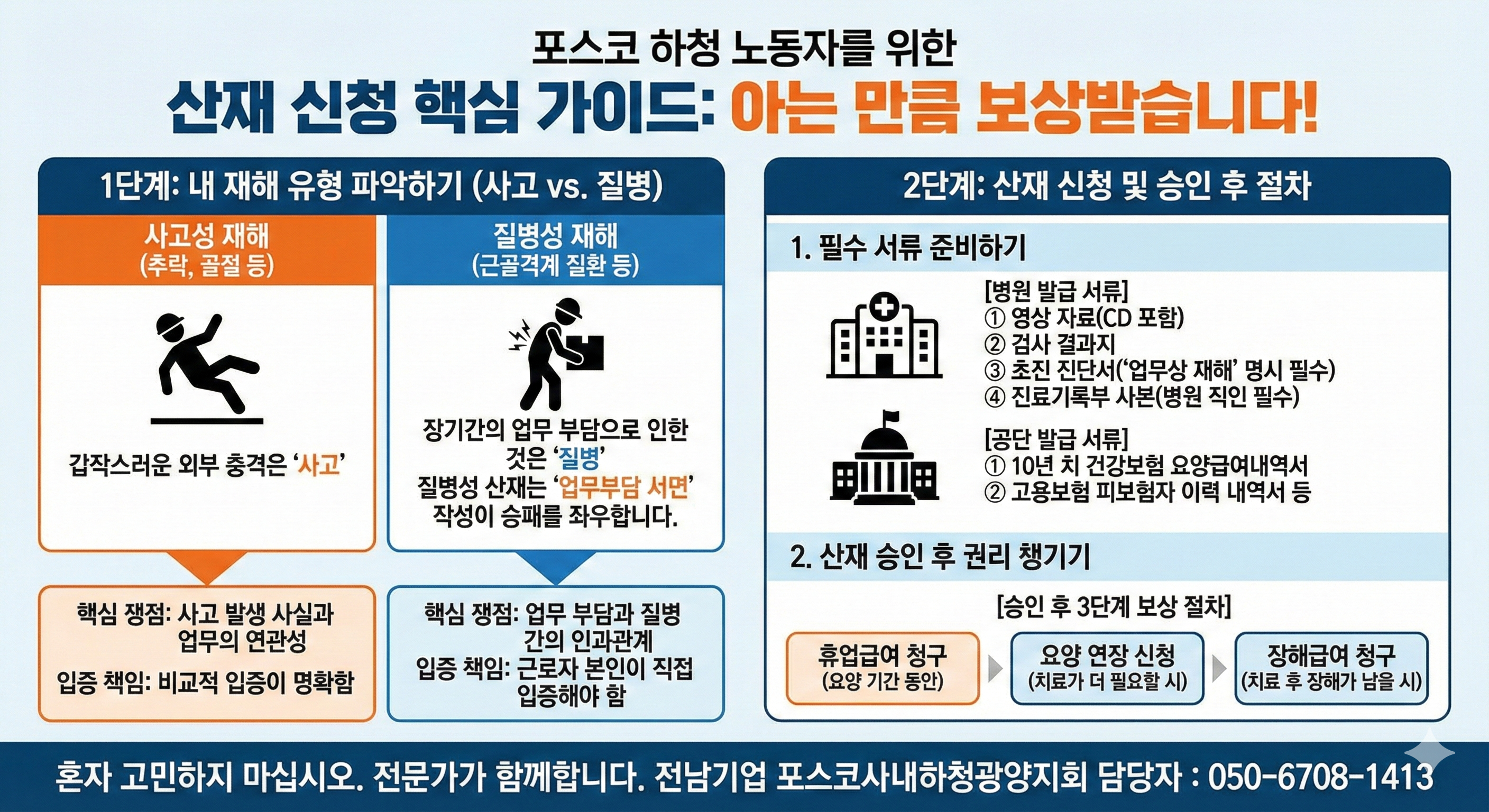 특히 질병성 산재는 입증이 까다로워 준비 없이 신청하면 불승인되기 쉽습니다. 오늘은 현장 응급조치 요령부터 유형별 필수 서류(표), 그리고 질병성 산재 신청의 A to Z까지 확실하게 정리해 드립니다.